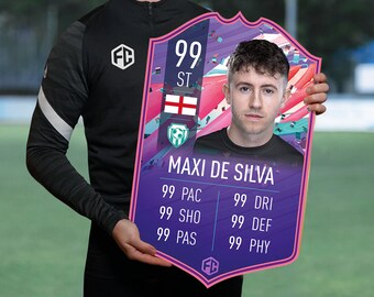 The perfect football gift for any football mad fan. 100% custom made and personalised fifa 21 card poster can be personalised with your photo, name, stats and any club badge. Please note we will crop the picture and professionally finish and make the card after purchase, giving you the absolute best quality product. They look amazing, excellent work! 5 out of 5 stars.